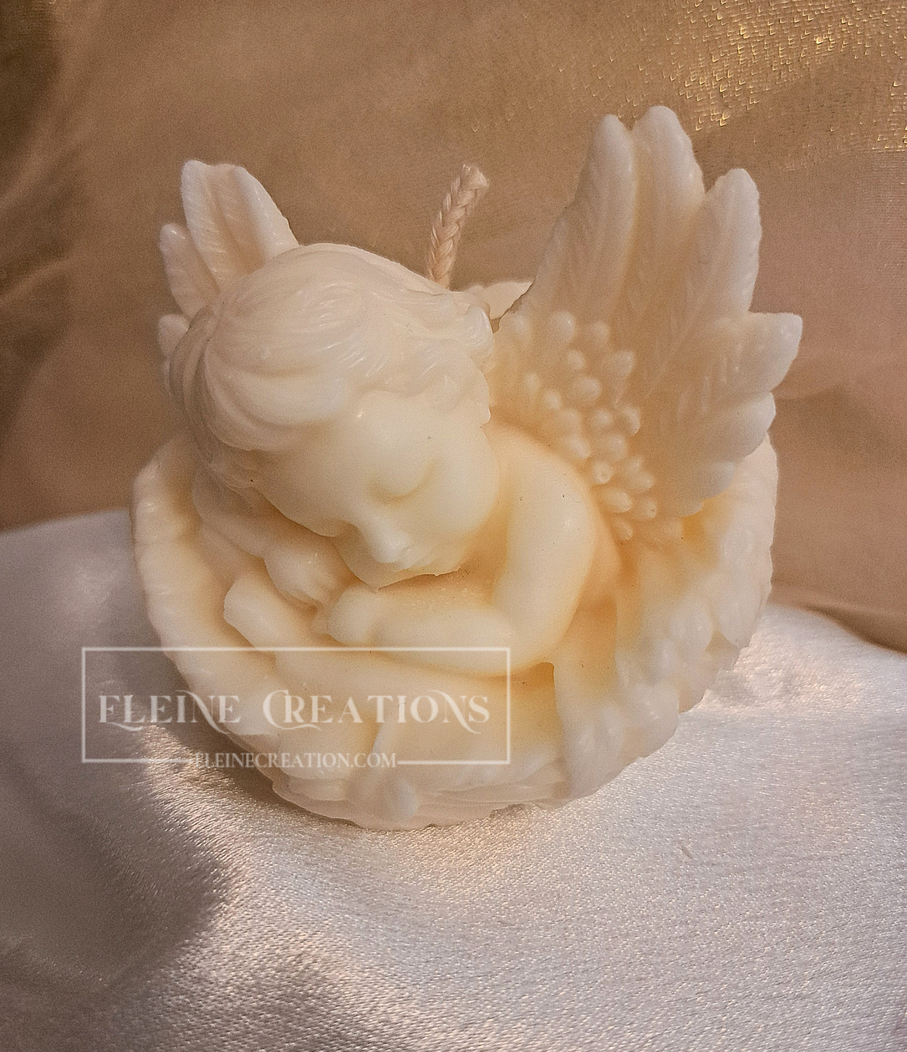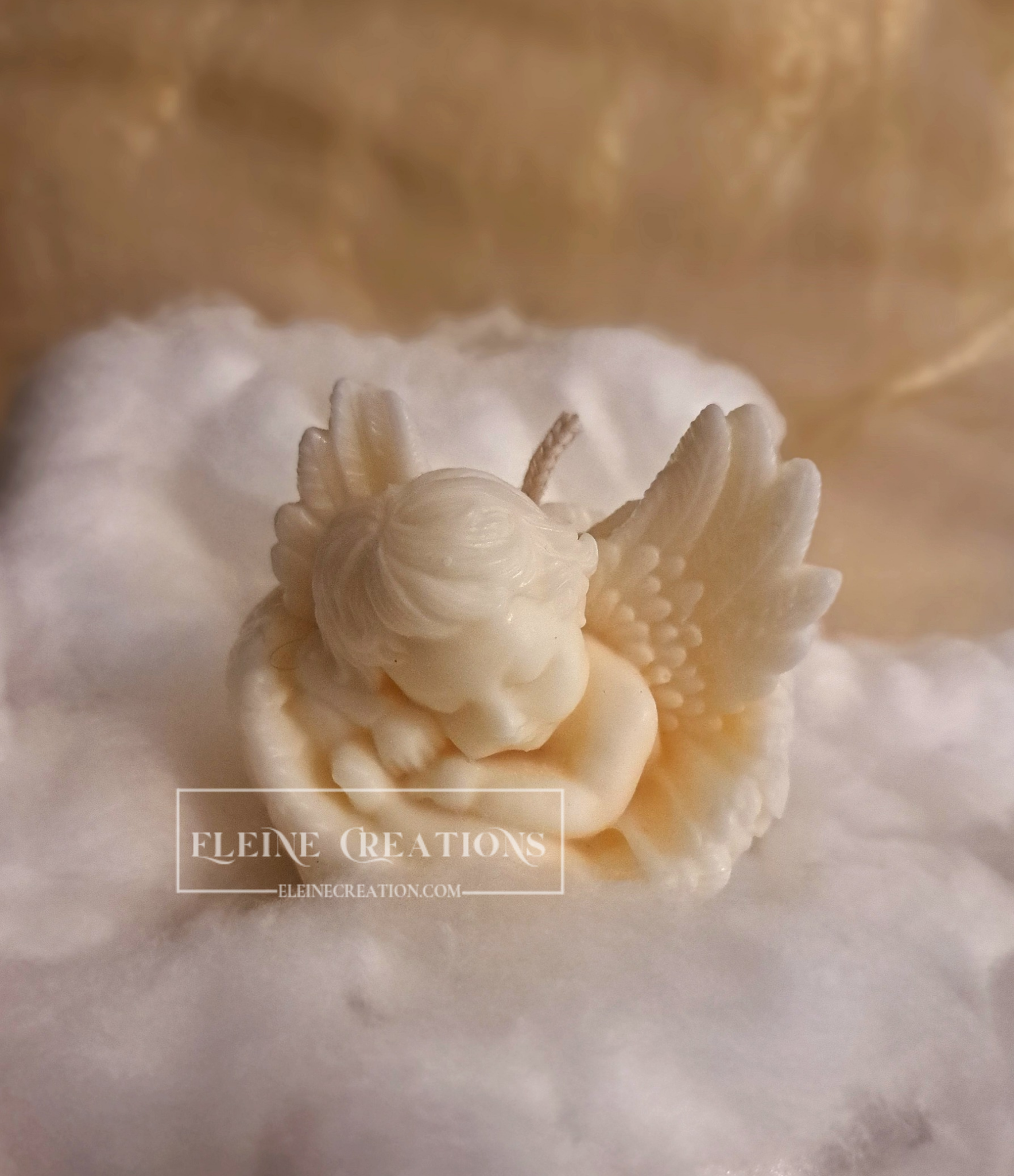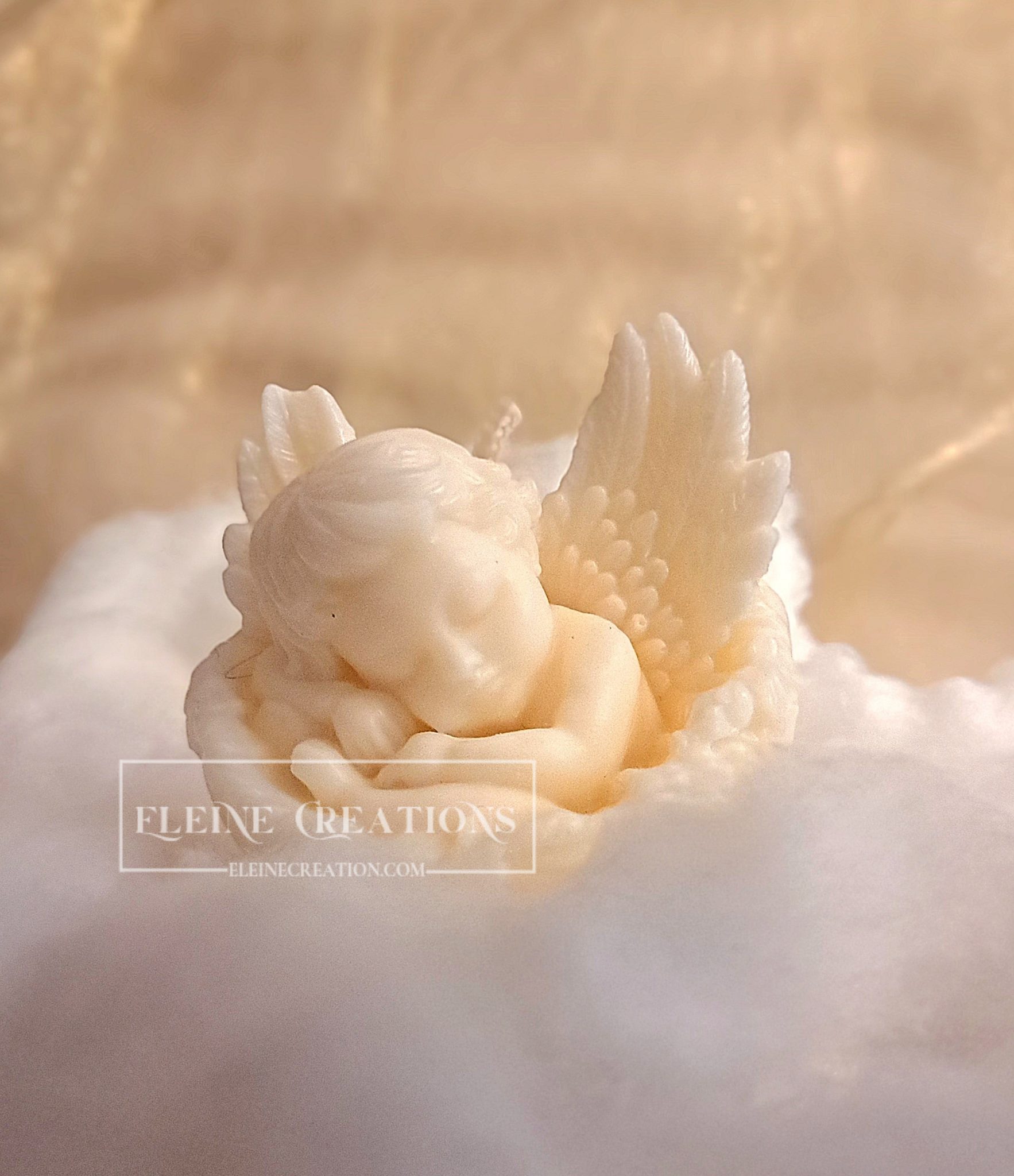 Realizzata a mano con cera di soia naturale, raffigura un piccolo angelo addormentato 😇, simbolo di protezione e serenità.