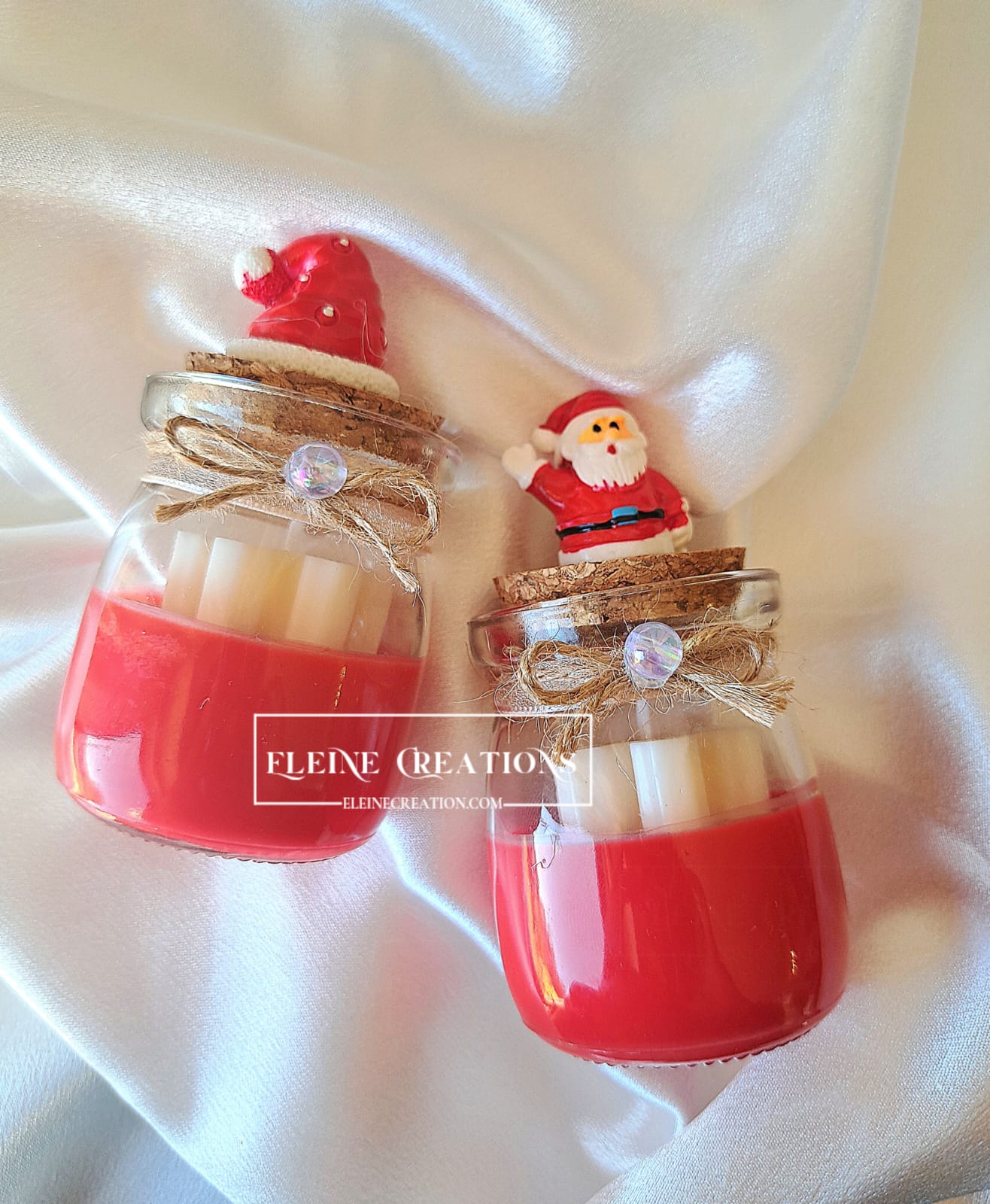 ✨ Candela natalizia realizzata a mano con 💚 cera di soia naturale, racchiusa in un elegante barattolo di vetro con tappo in sughero decorato a tema: Babbo Natale, 🎄 Alberello o 🦌 Renna.